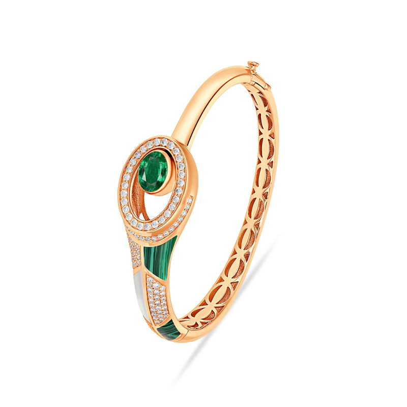 D' OPRAH Rose Gold Diamond Bangle natural emerald