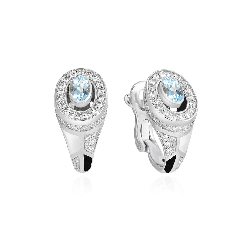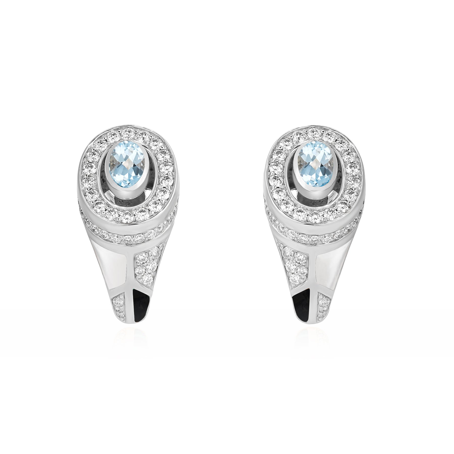 These luxury 18K white gold diamond earrings highlight the luminous clarity of natural aquamarine. Known for its tranquil blue tone, aquamarine introduces a calm and refined presence that feels fresh and sophisticated.