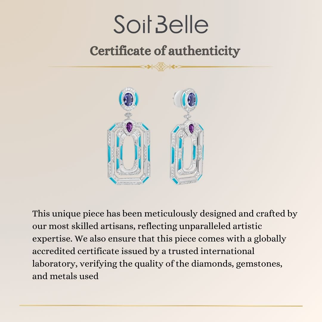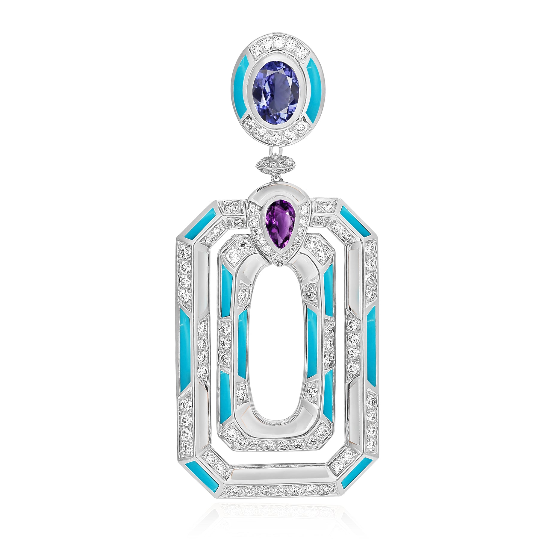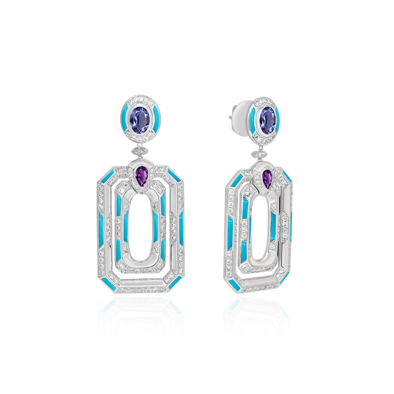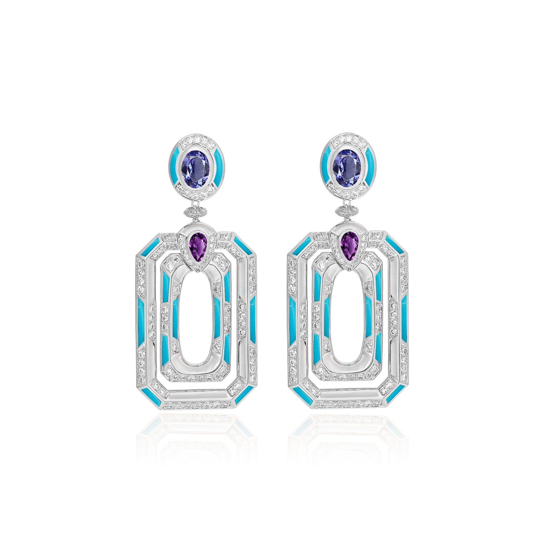 D' OPRAH white Gold Diamond Earrings tanzanite amethyst Natural Stones