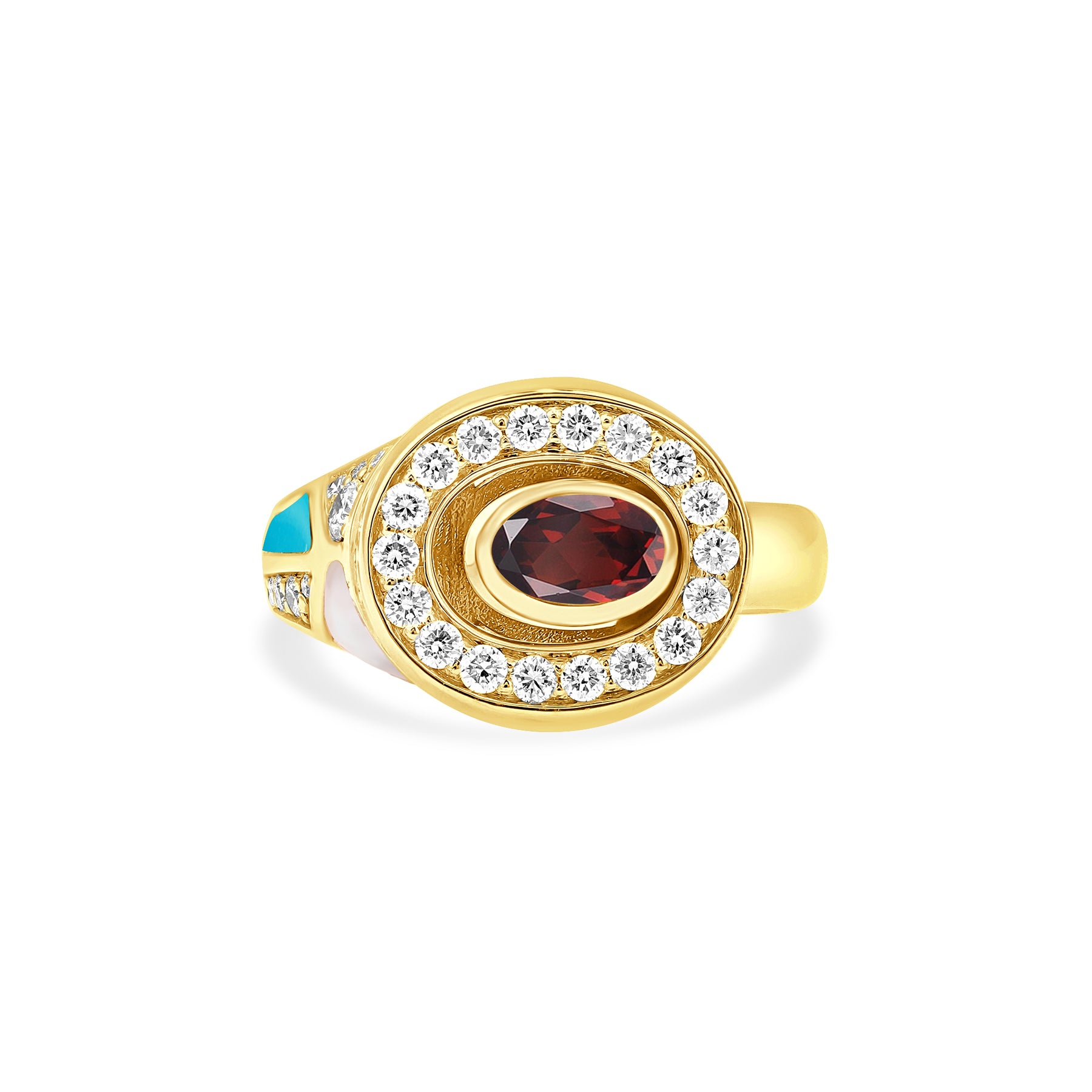 Luxury Yellow Gold Rhodolite Turquoise Ring – D’OPRAH Fine Jewelry Collection