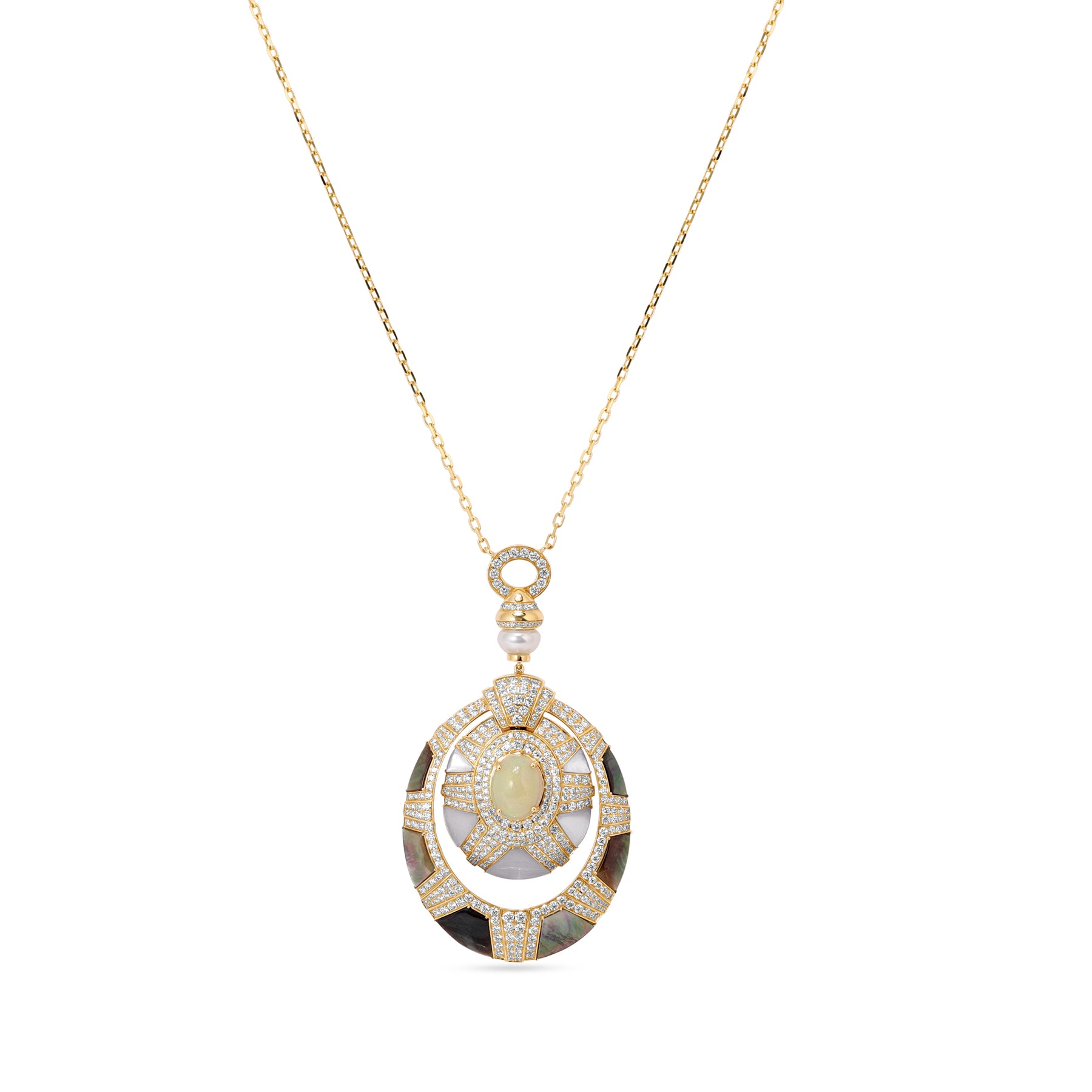 Luxury Yellow Gold Opal Diamond Necklace – D’OPRAH Fine Jewelry Collection