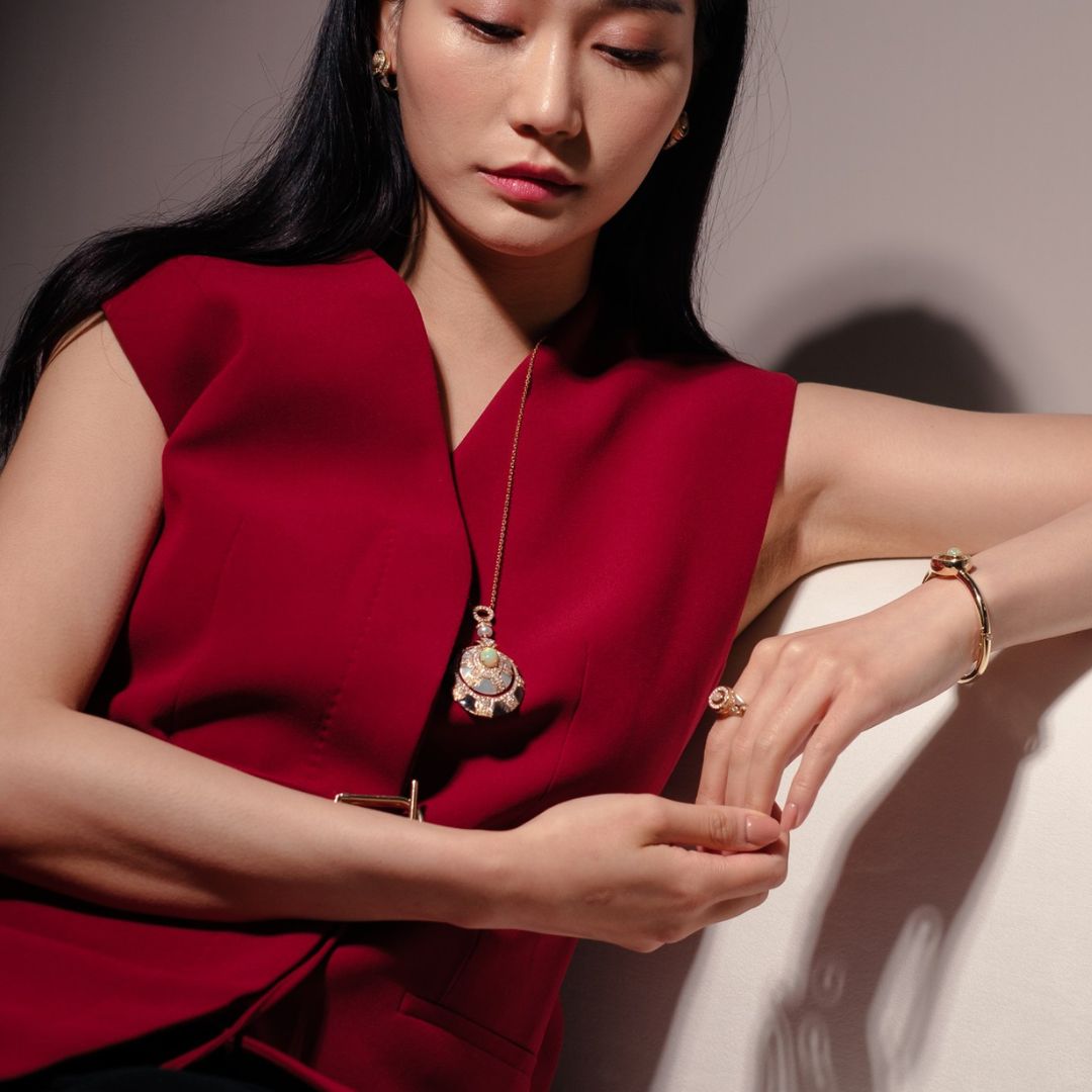 Natural diamonds introduce structured brilliance, enhancing the opal’s glow while maintaining refined balance. The warmth of yellow gold enriches the composition, resulting in fine jewellery designed for graceful sophistication and contemporary luxury.