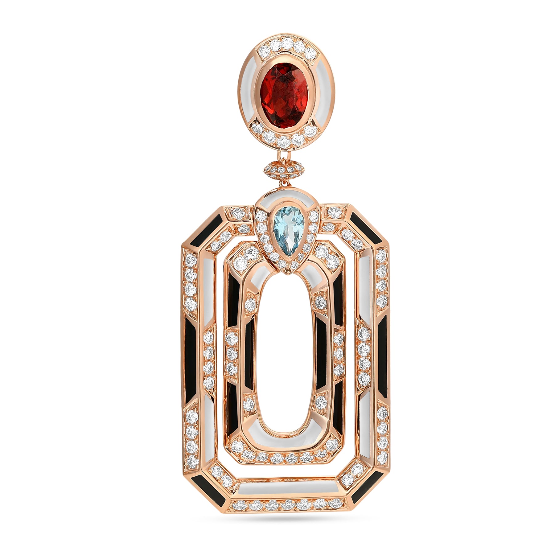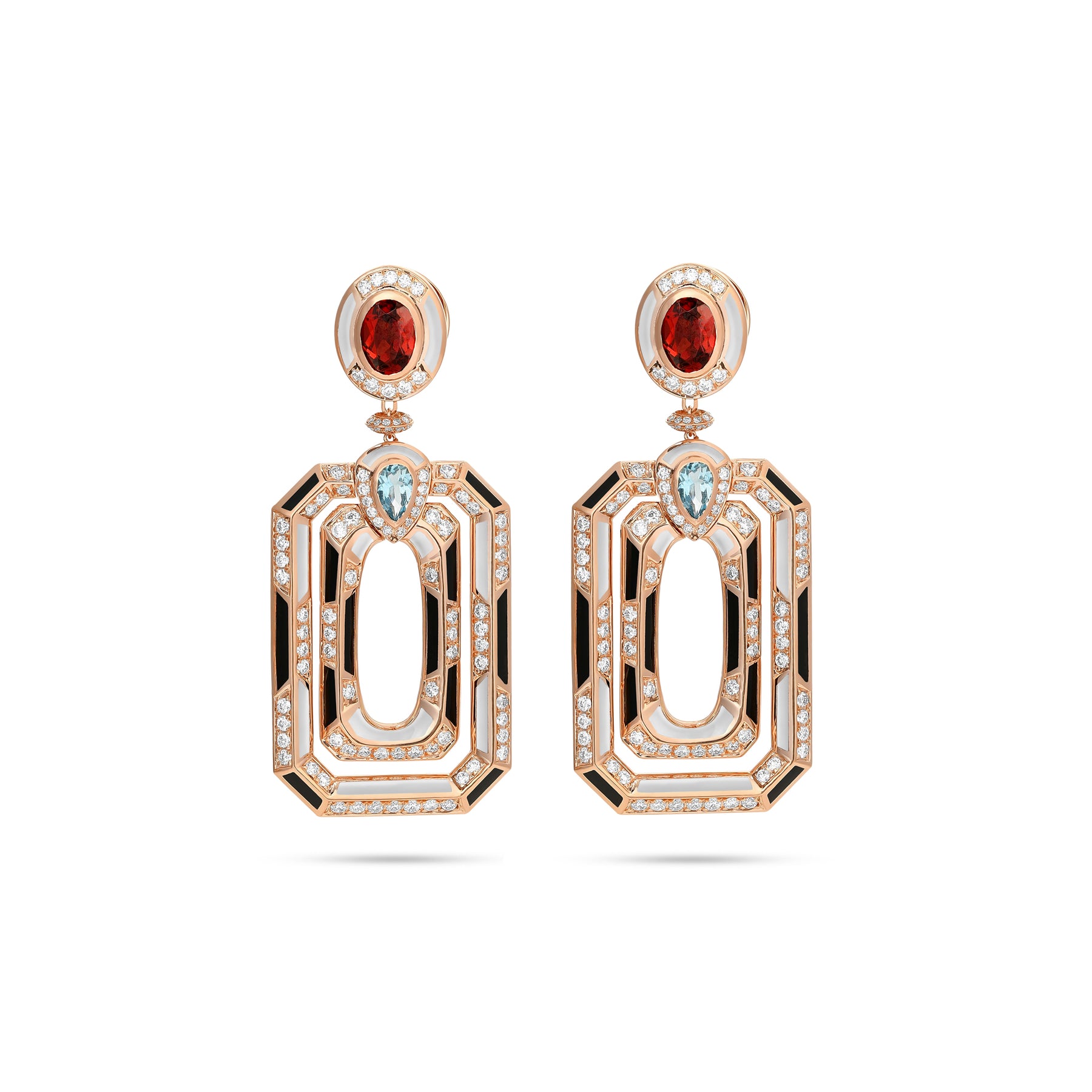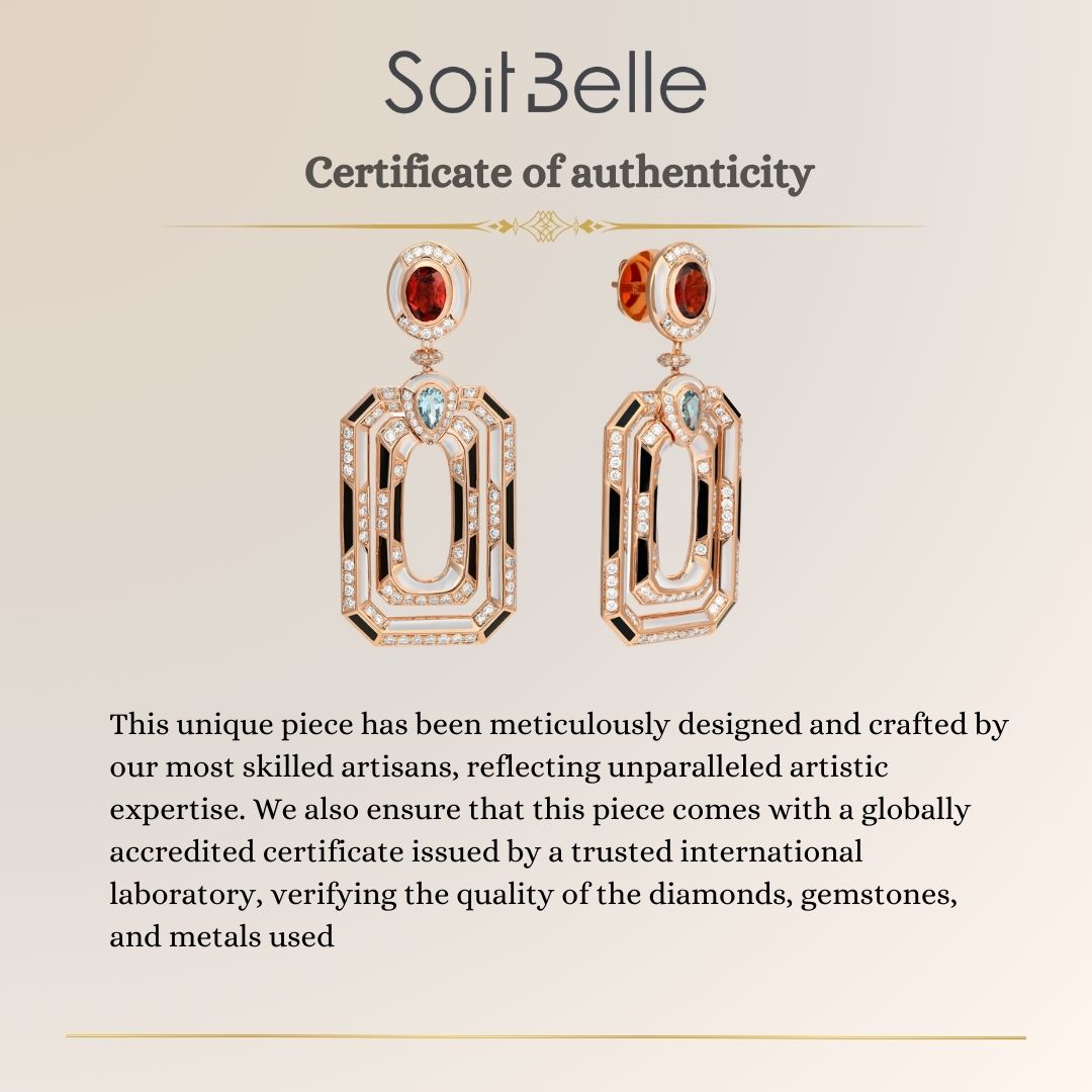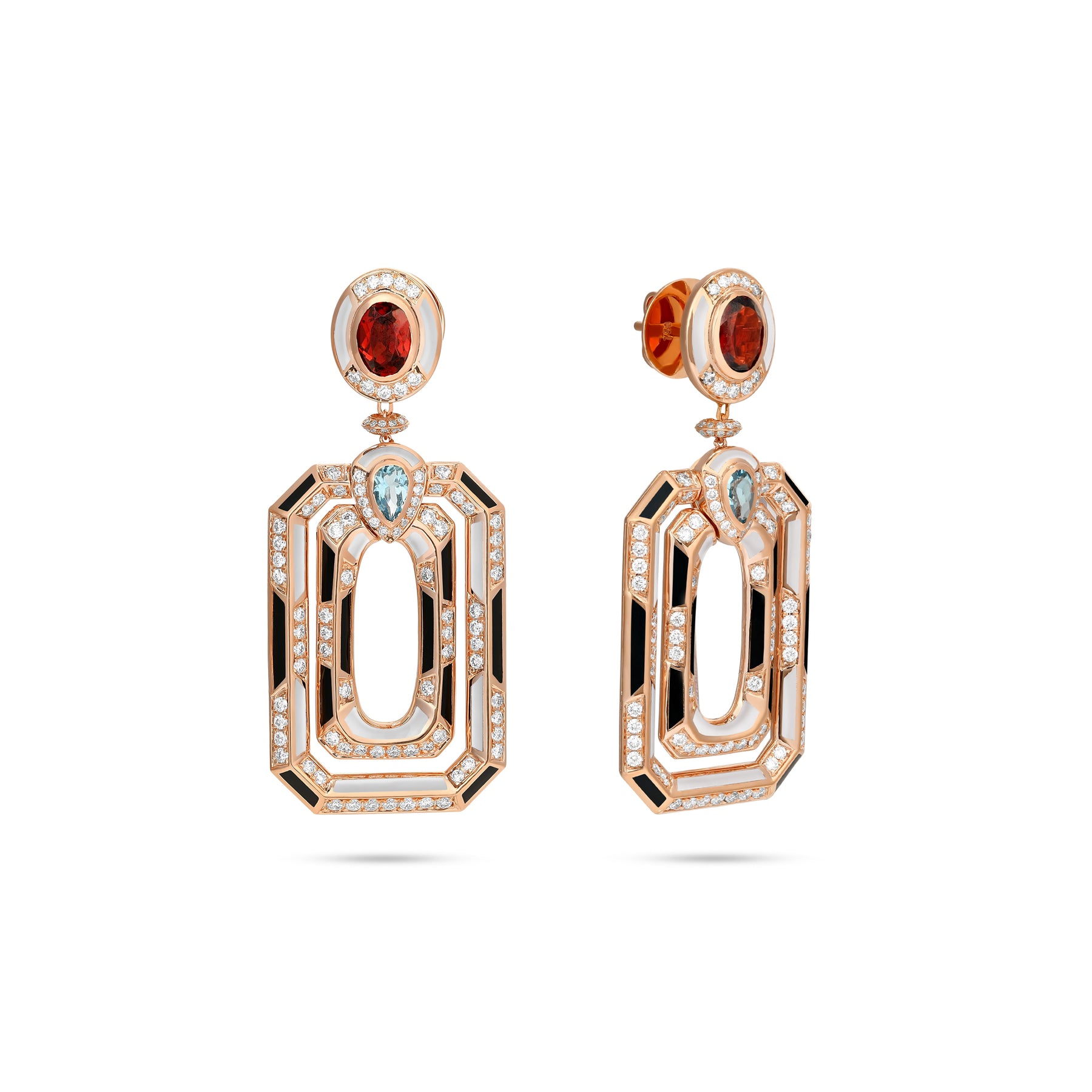 D' OPRAH Rose Gold Diamond Earrings with Natural Topaz Rhodolite