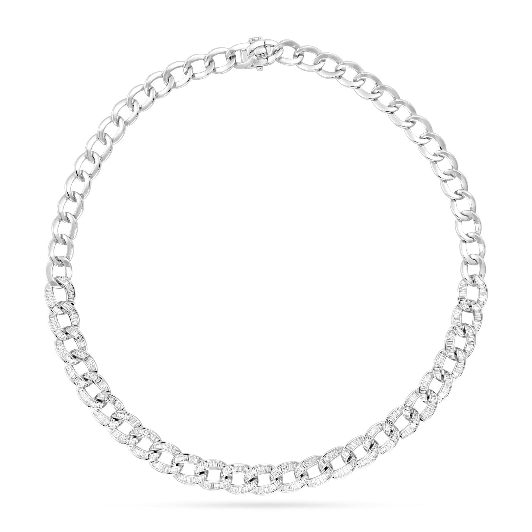 DILARA Interlinked White gold Diamond Baguette Necklace in 18K Gold