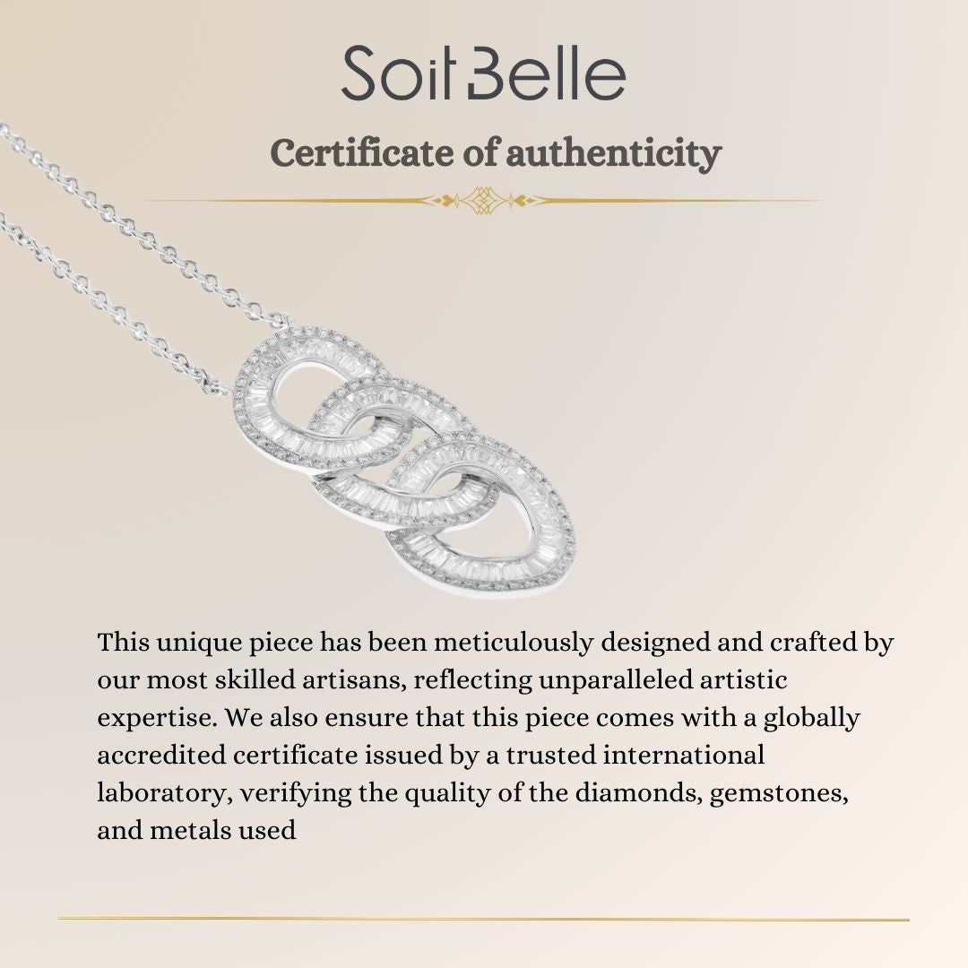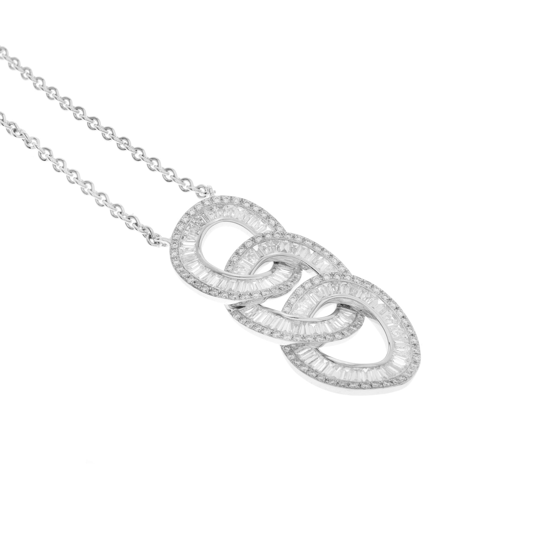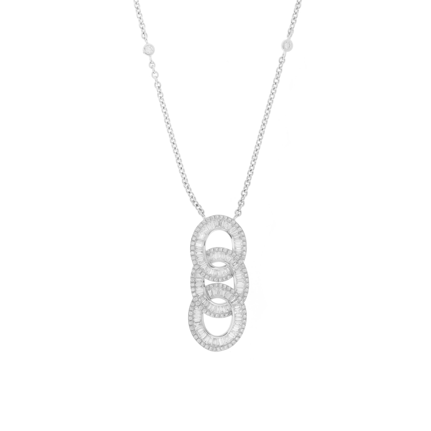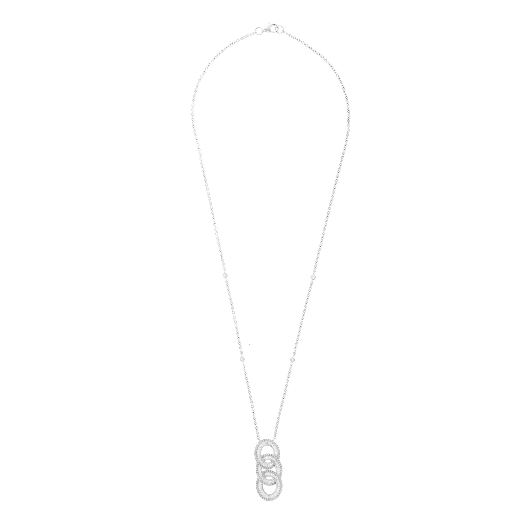 DILARA White gold Three Diamond Circle Baguette Cut Pendant