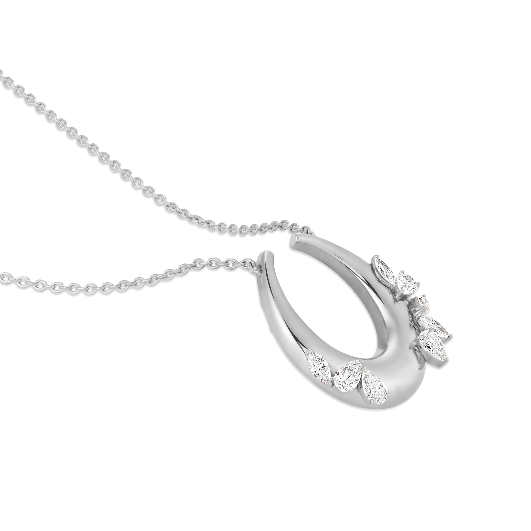 The ÉTOILE Celestial Crescent White Gold Necklace embodies the ethereal charm of starlit nights and lunar radiance. Expertly handcrafted in gleaming 18K white gold, this exquisite piece features a crescent-shaped design gracefully adorned with brilliant-cut white diamonds, capturing the allure of the moon as it shines over Dubai’s skyline.