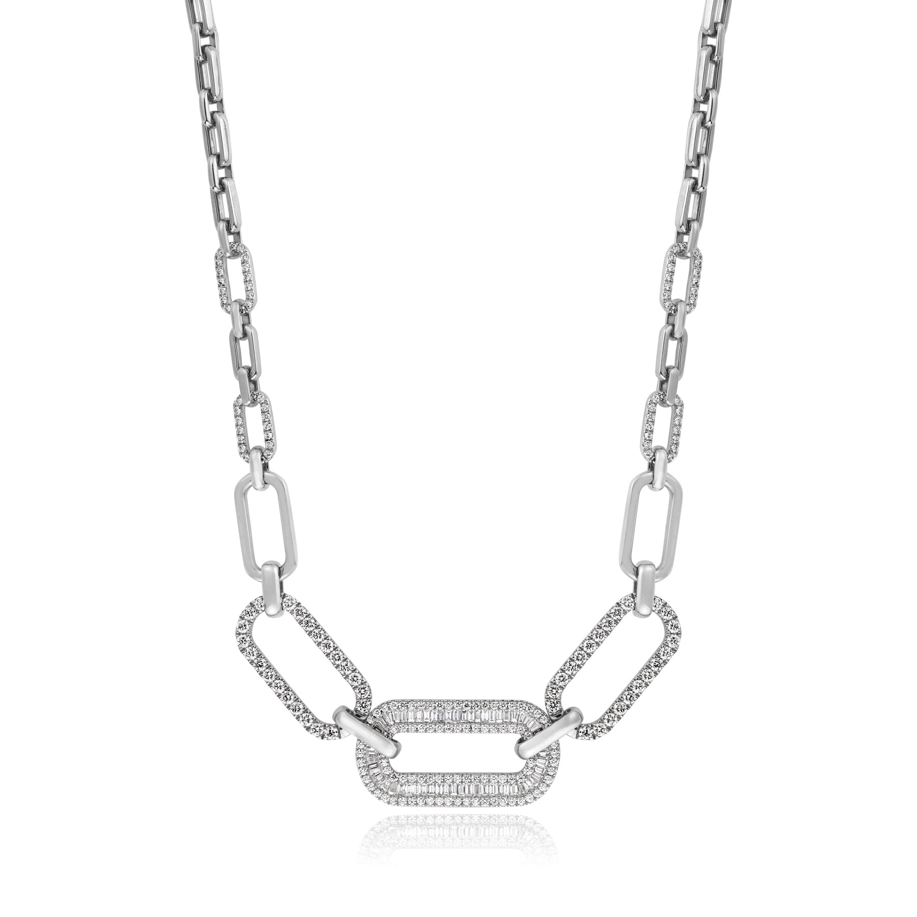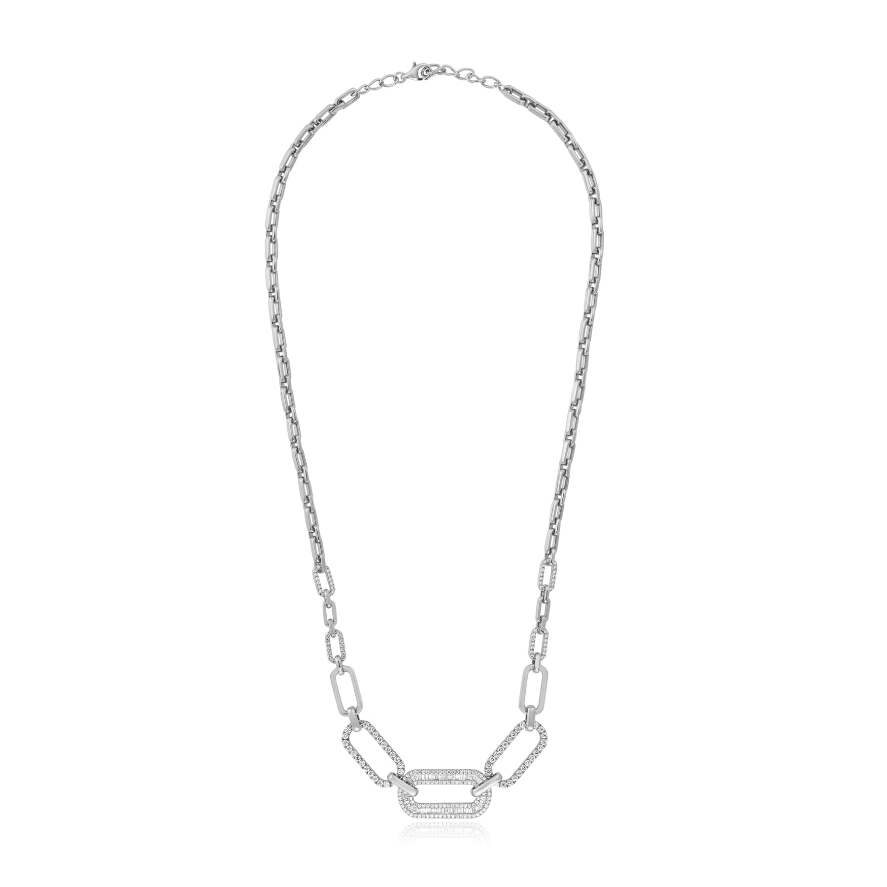 The DILARA White Gold Diamond Necklace brings together bold femininity and timeless sophistication in one radiant piece. Crafted in rich 18K White gold (750/1000), this necklace features a harmonious composition of interlinked forms, each meticulously pavé-set with brilliant-cut diamonds. The soft pink hue of the gold adds warmth and allure, while the diamonds create a luminous rhythm around the neckline.