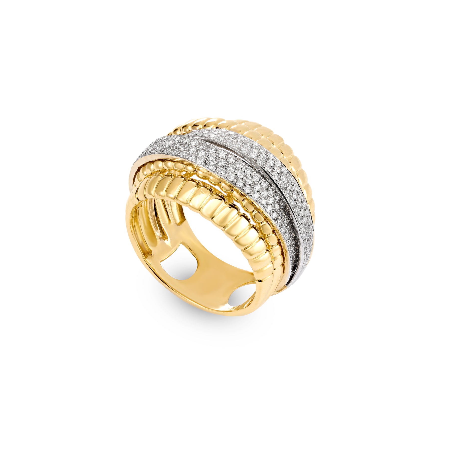 Luxury 18K Yellow Gold Overlapping Diamond Ring – Fine Jewelry Collection