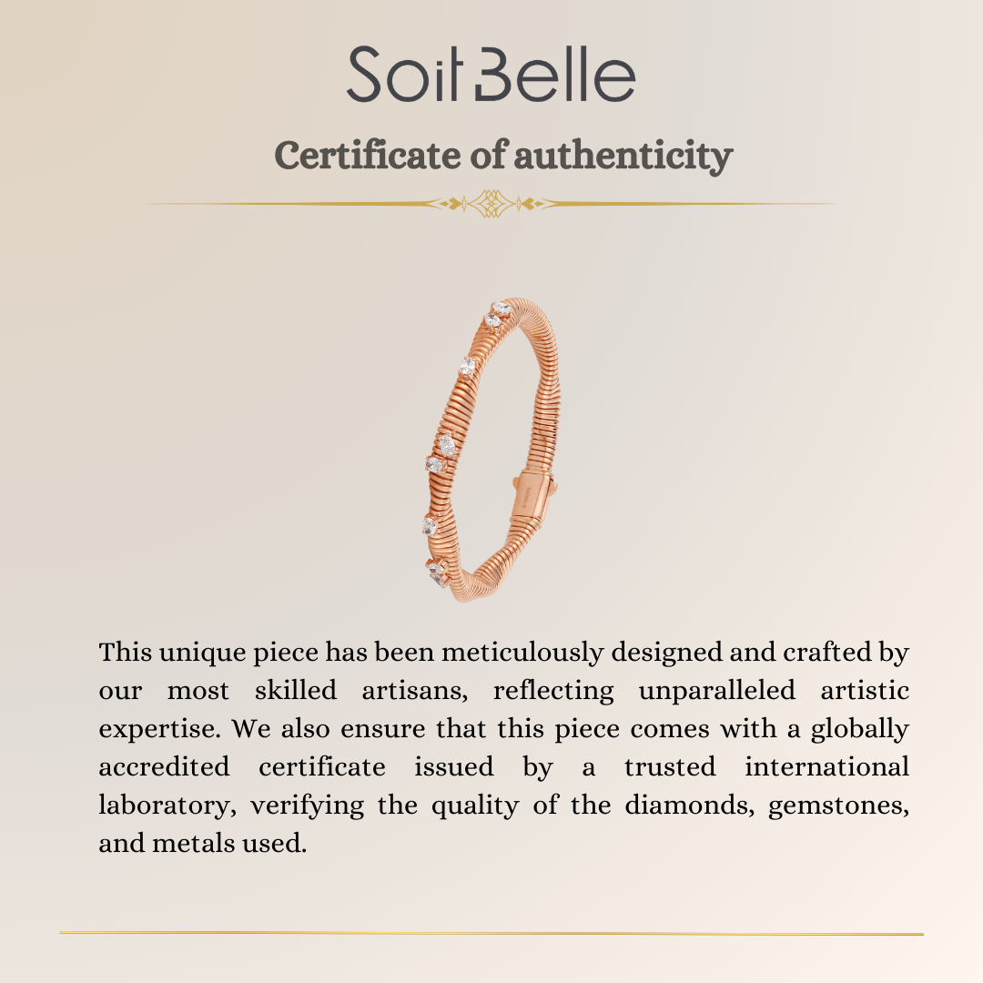 Natural diamonds are precisely set along the sculptural form, delivering structured brilliance that enhances the flowing design. The warmth of rose gold balances the sparkle, resulting in fine jewellery that feels luminous, modern, and confidently sophisticated.