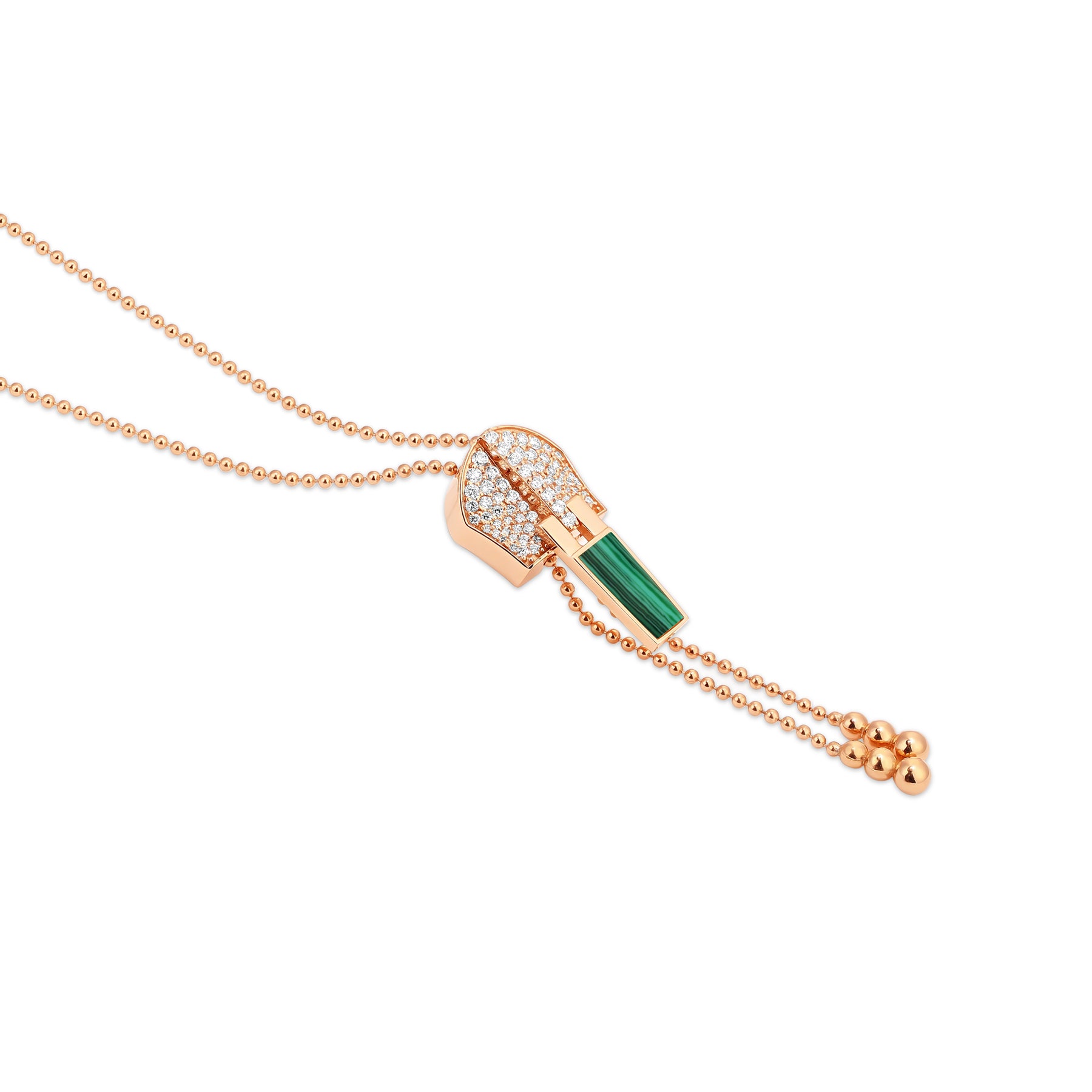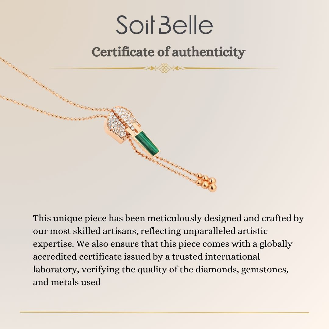 Lucien Rose Gold Diamond Zip Malachite Necklace