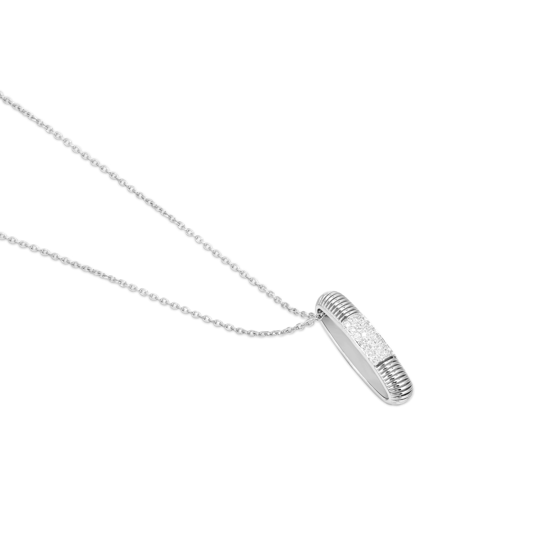 This luxury 18K white gold diamond pendant captures the essence of contemporary elegance through a clean and luminous design. Natural diamonds create a radiant focal point, reflecting light with clarity and refined sophistication.