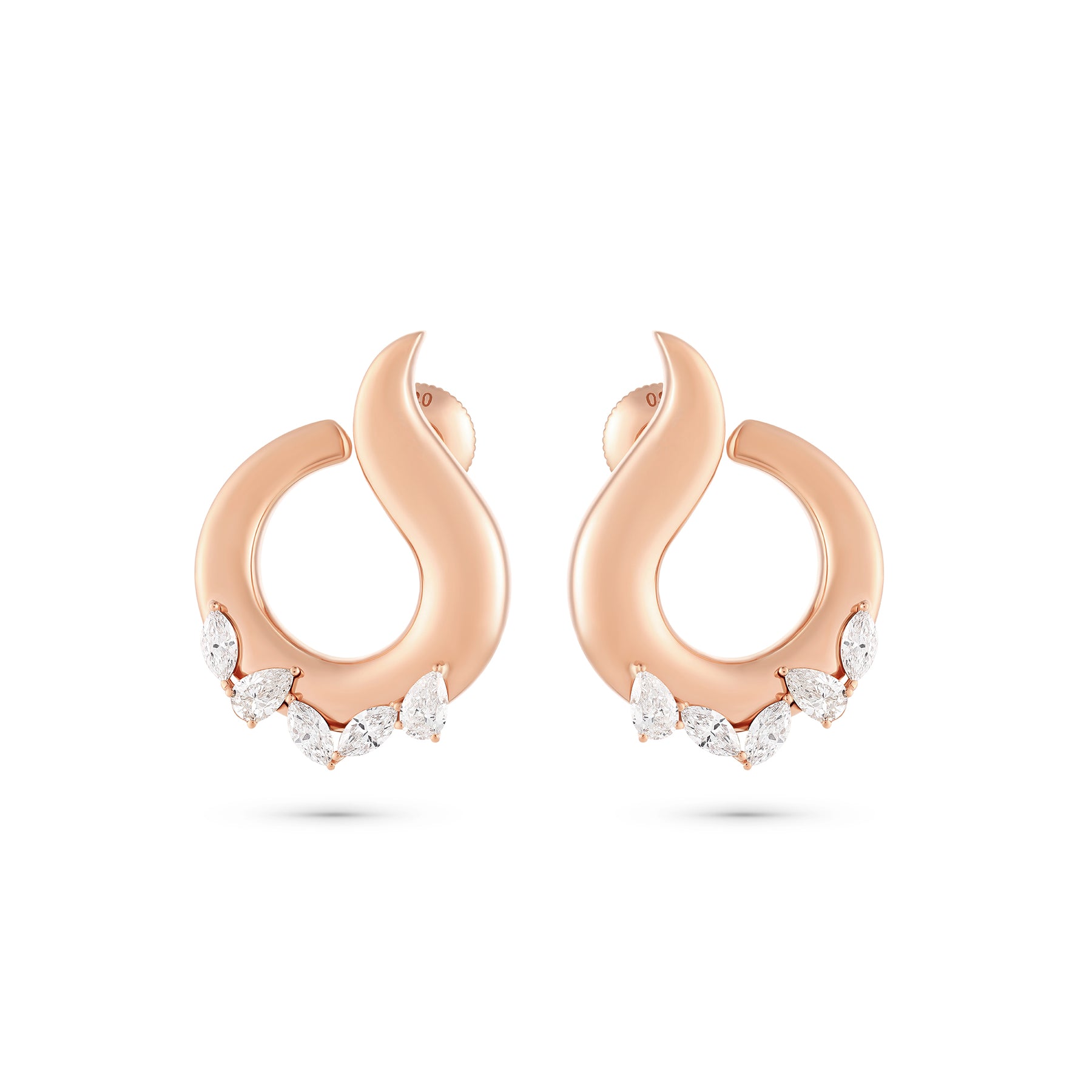 The ÉTOILE Rose Gold Sculpted Hoop Earrings with Pear-shape and Marquise Diamonds embody a modern interpretation of timeless sophistication. Handcrafted in radiant 18K rose gold, these earrings feature a sculpted hoop silhouette, gracefully designed to blend bold structure with feminine curves.