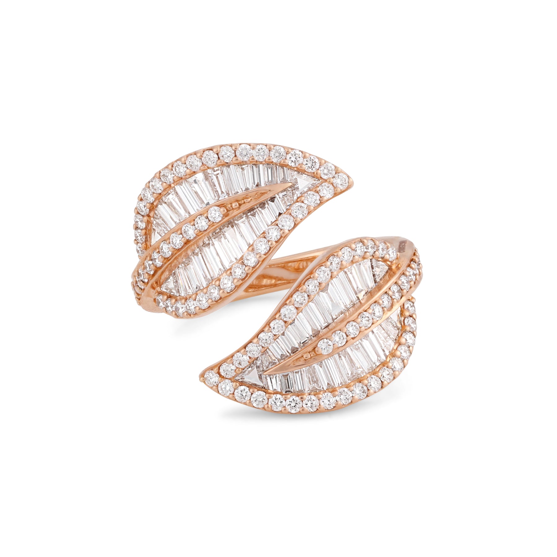 RONZA Rose Gold Diamond Leaf Ring – Nature-Inspired Elegance in 18K