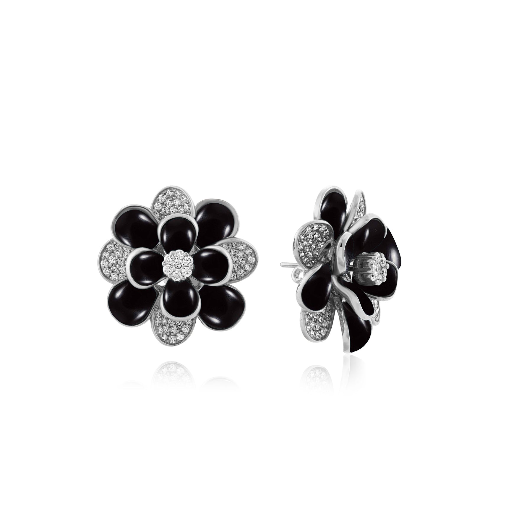 RONZA White Gold Diamond Earrings with Black Onyx - 18K Gold Luxury in Dubai