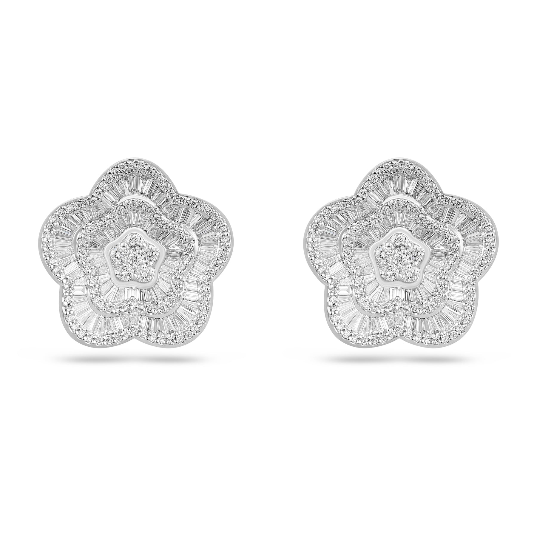 RONZA White Gold Diamond Flower Earrings – Feminine Grace & Timeless Luxury