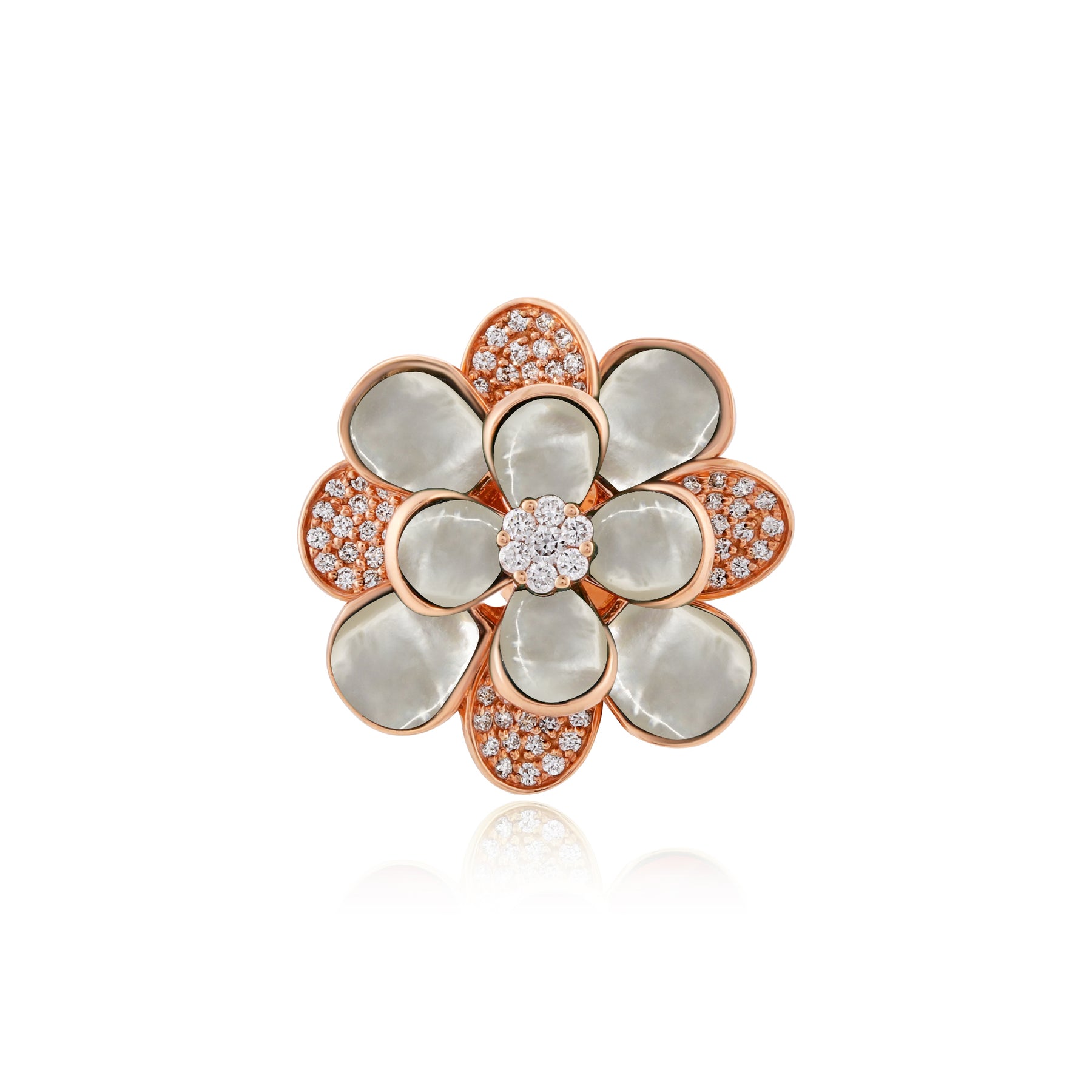Gemstones: Features natural mother of pearl enhanced by brilliant-cut white diamonds.