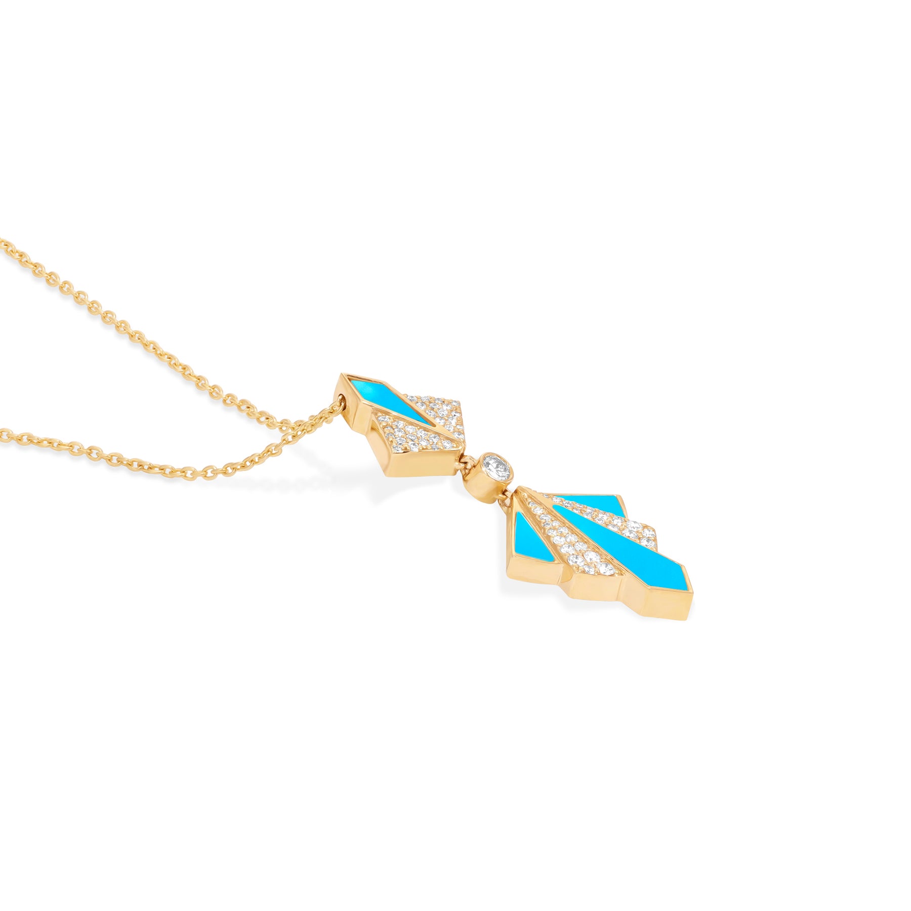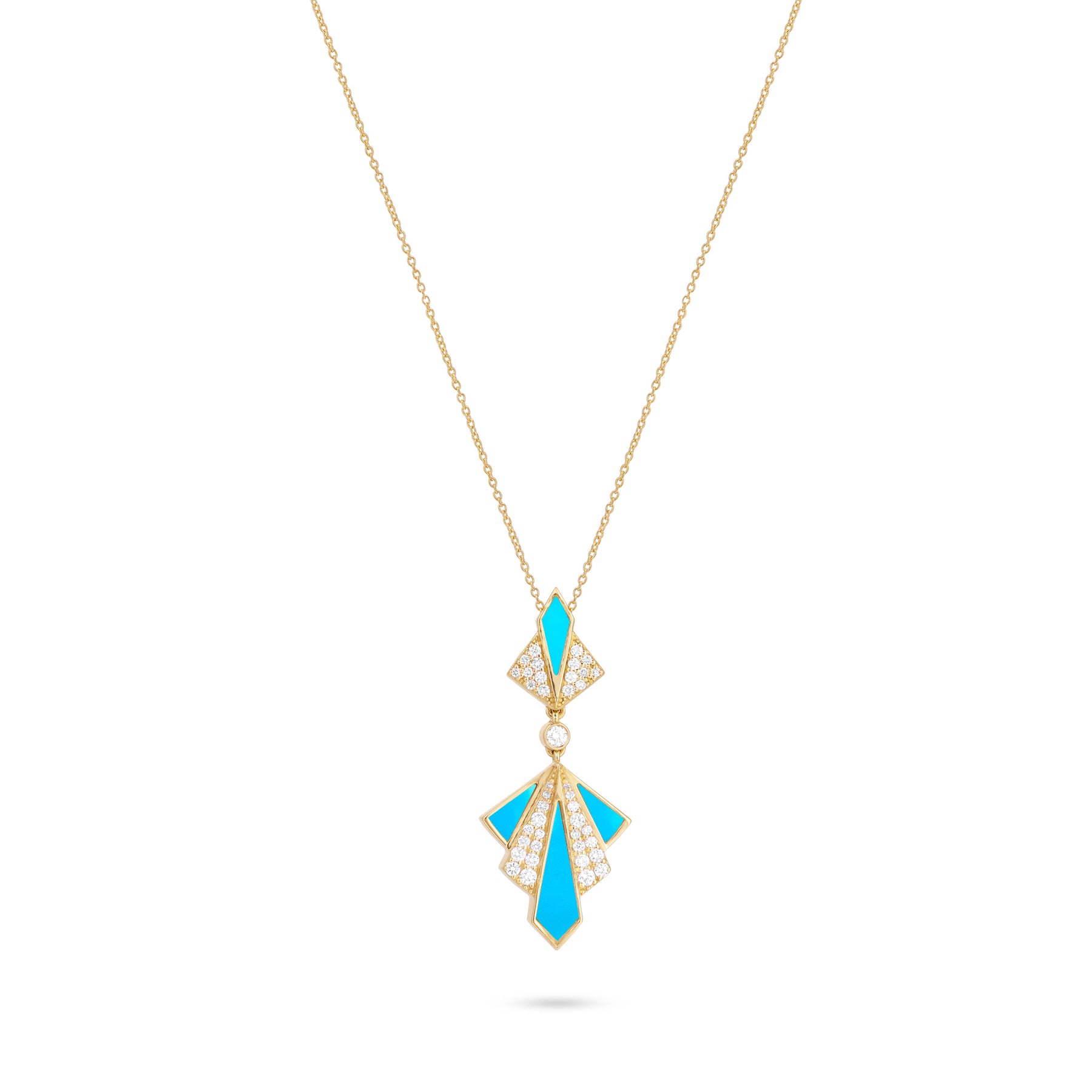 VISTA 18K Yellow Gold Pendant with Turquoise & Round Diamonds – Soit Belle
