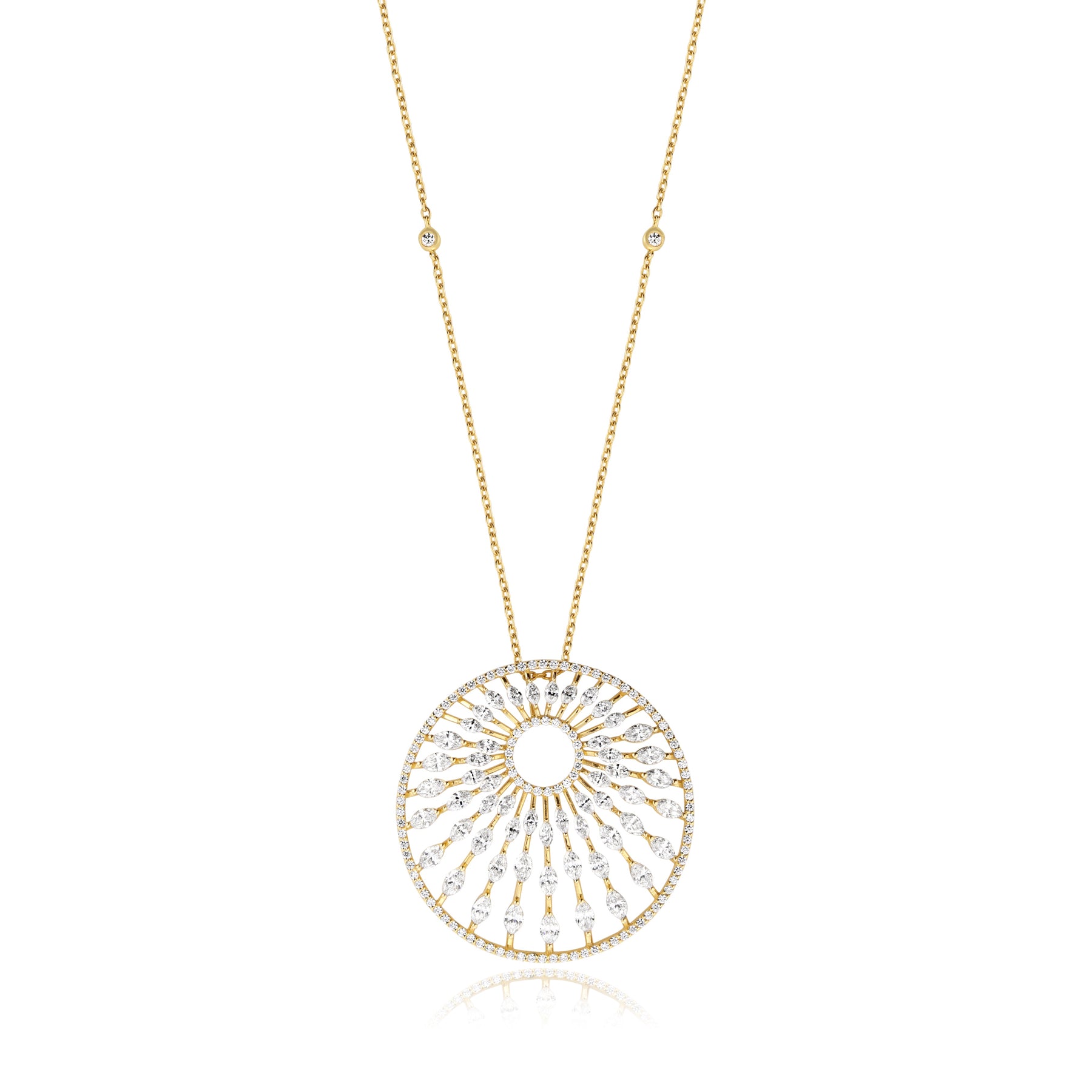 ÉTOILE Yellow Gold Radiant Sunburst Diamond Pendant - 18K Gold Luxury in Dubai