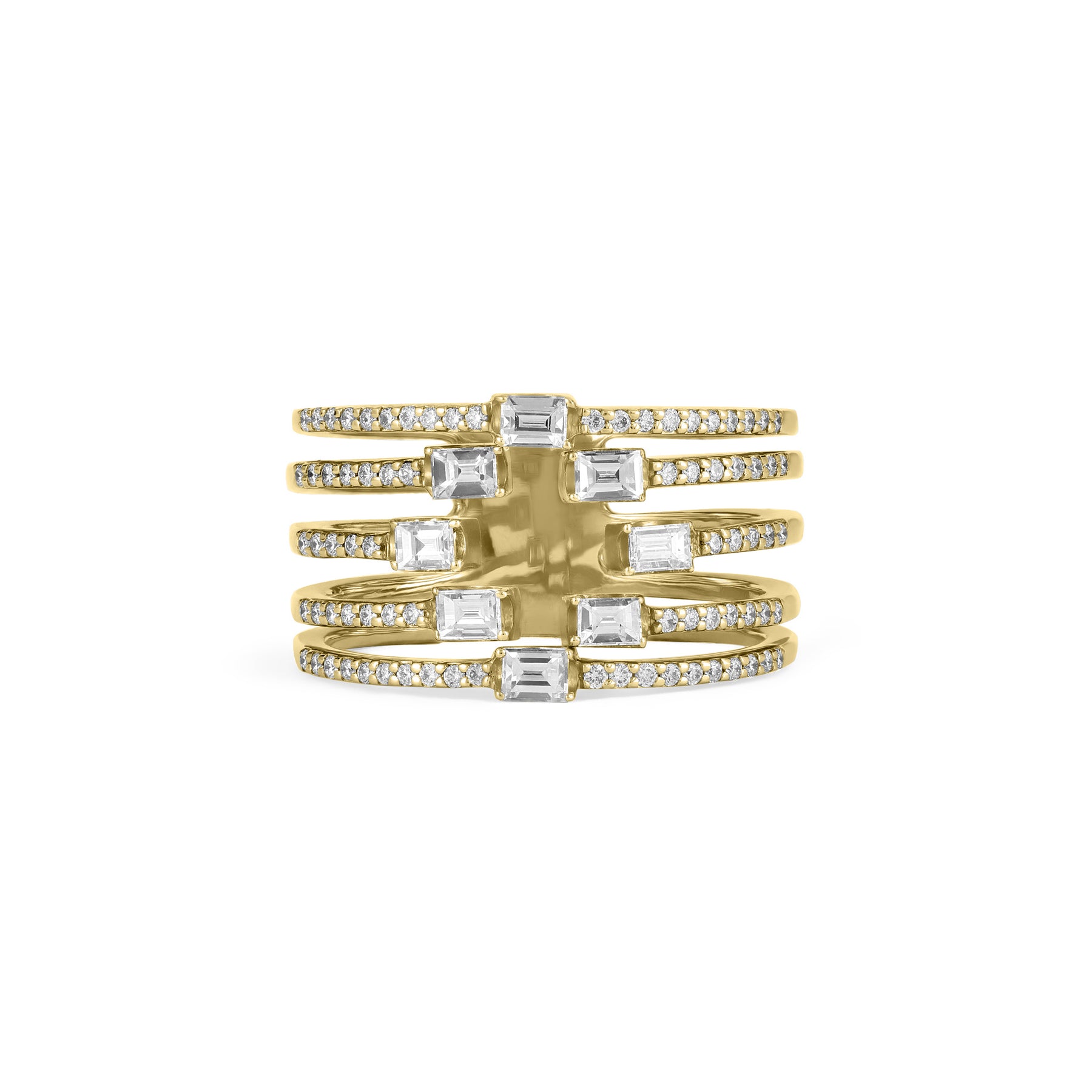 DILARA Diamond Ring - 18K Yellow Gold with Baguette Diamonds in Open Claw Setting