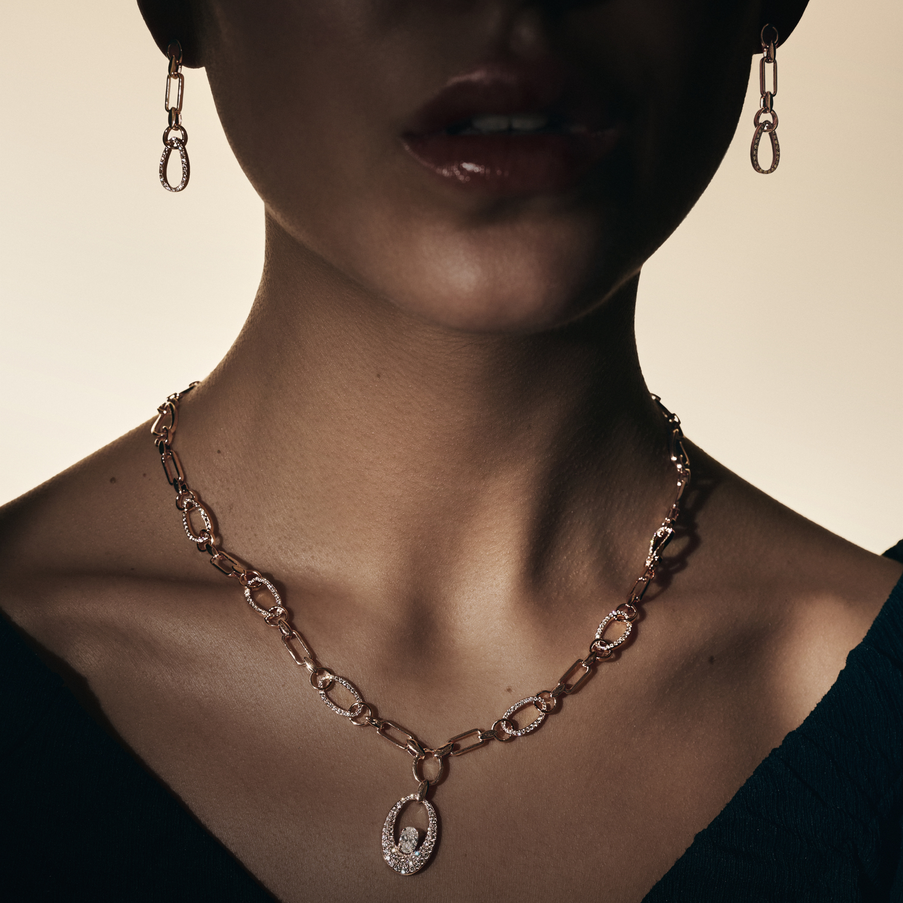 ثُبّت كل حجر ألماس بدقة للحفاظ على التوازن المثالي وتعزيز أقصى درجات التألق. ويضفي دفء الذهب الوردي نعومة راقية تعزّز وهج الأحجار وتبرز لمعانها، ليمنحك قطعة مجوهرات أنثوية أنيقة تعكس الثقة والفخامة العصرية.